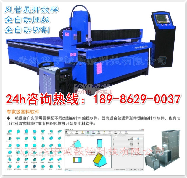 武漢華宇誠(chéng)數(shù)控生產(chǎn)的風(fēng)管等離子切割機(jī),針對(duì)風(fēng)管展開切割進(jìn)行了專門優(yōu)化。切割速度更快、切割精度更高、切割效果更好。并搭配專門的風(fēng)管展開軟件,用戶只需選擇要切割的風(fēng)管類型,輸入相應(yīng)尺寸參數(shù),便可自動(dòng)排料、自動(dòng)生成加工程序,用戶直接用U盤在切割機(jī)上調(diào)入加工程序切割即可。  適合材料有:不銹鋼板、碳鋼板、鋁板、銅板、鍍鋅板、白鐵皮、合金板等多種板材材料,一應(yīng)俱全!高速等離子切割,切割效果為激光下限!