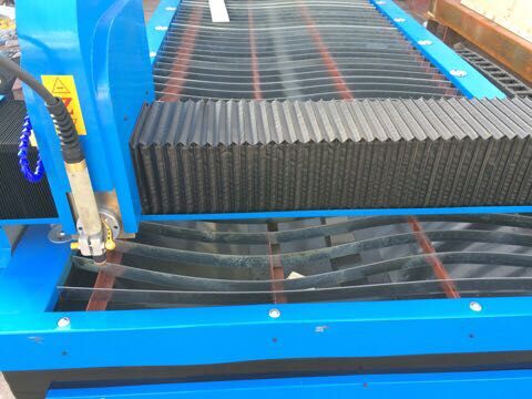 機器橫梁采用臺灣進口雙軸心導軌,并配有防塵罩保護。等離子調高體為鋁合金結構,減少橫梁負載,調高軸為高碳鋼棒,硬度高耐磨。等離子配套接口裝有等離子防撞裝置,對等離子割槍提供安全保護。同時配有等離子切割噴水裝置,在切割時能實時對切割點噴水,起到提高切割效果,減小熱變形的作用。