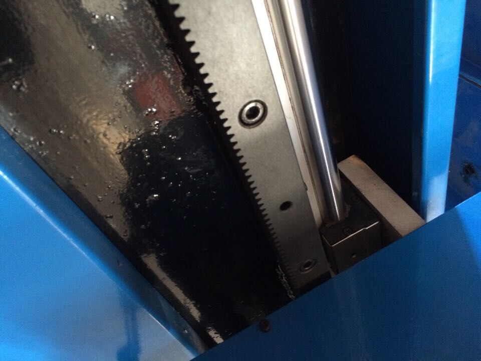 驅動系統部分:   機器縱向采用高精度齒條與日本進口松下伺服電機結合使用,所使用的齒輪、齒條全部經過全自動新型淬火設備加以淬火處理,精密的加工工藝,使其精度達到了GB/T100967-9級標準。同時用臺灣雙滾軸直線導軌保證縱向行走更加精準。